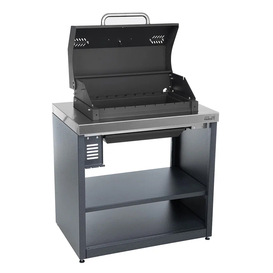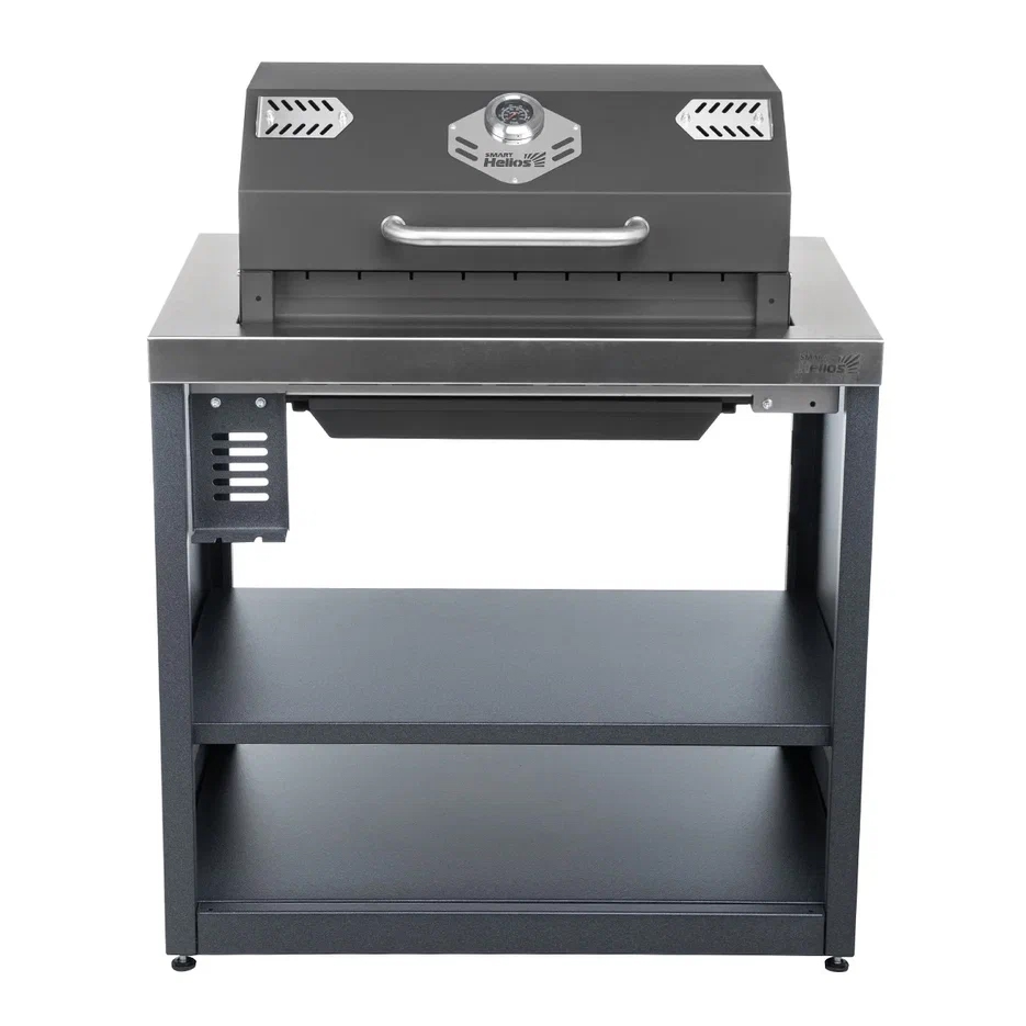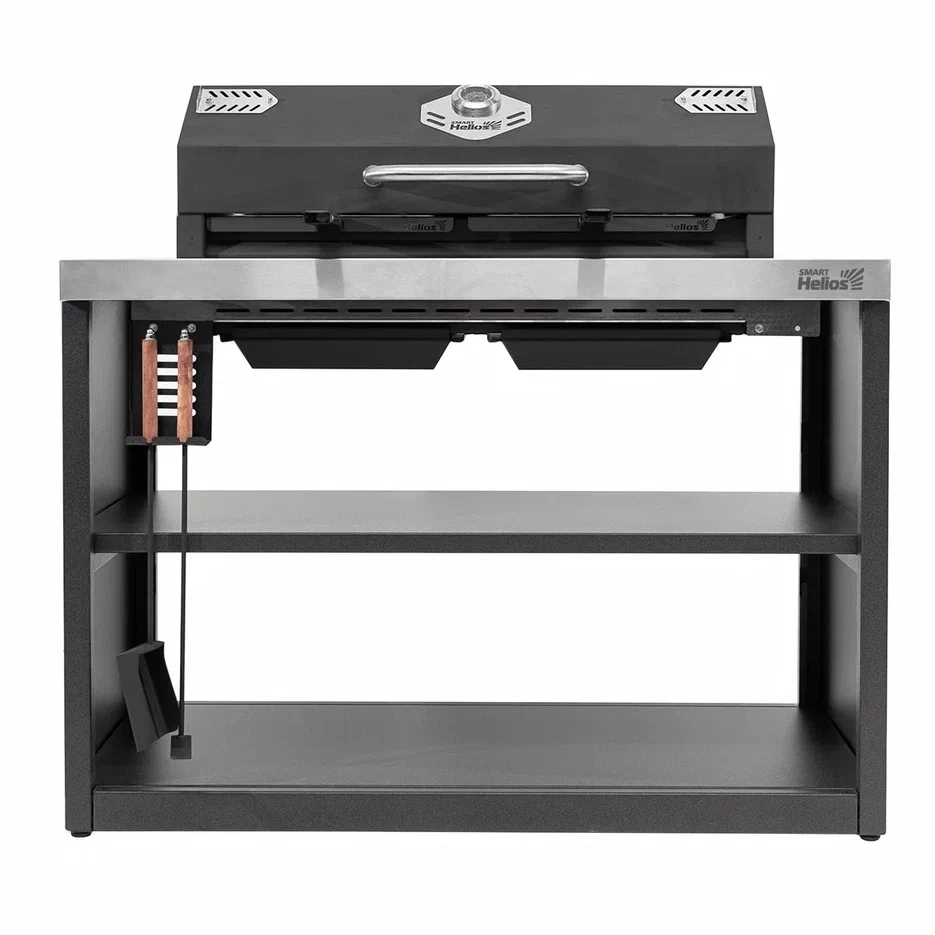 Размеры модуля: Высота (с открытой крышкой) - 1420 мм Ширина - 900 мм Глубина - 600 мм Вес модуля - 72 кг Термостойкая краска выдерживает нагрев до 1000 градусов. Сталь 2 мм. Двойные стенки дольше удерживают тепло в жаровне. Регулируемые вентиляционные отверстия. Контроль температуры осуществляется с помощью датчика температуры, встроенного в крышку. Перфорированное дно, а также наличие зольника. Пищевая нержавеющая сталь. Корпус выполнен в холоднокатаной стали с полимерно-порошковым покрытием.